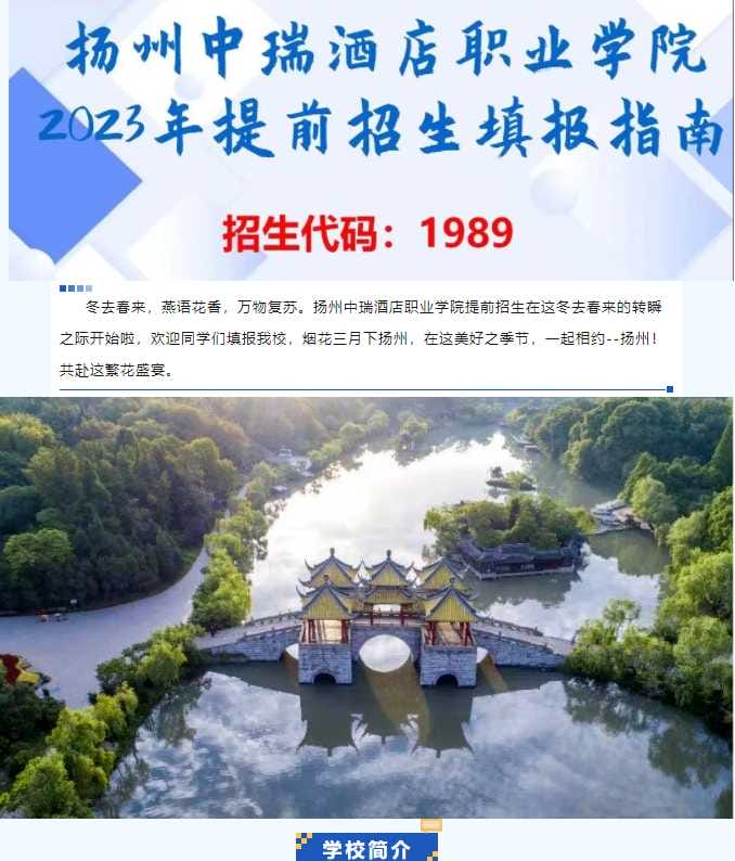 扬州中瑞酒店职业学院2023年提前招生填报指南